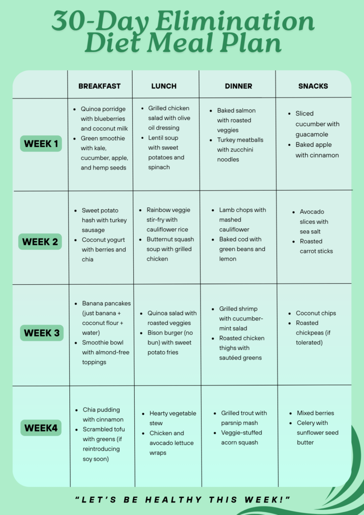 In this guide, we’ll walk you through how the elimination diet works, what you can eat, a sample 30-day meal plan (week by week), and where to get your printable PDF version. Whether you’re doing this under the guidance of a practitioner or going solo, this can be your friendly companion.